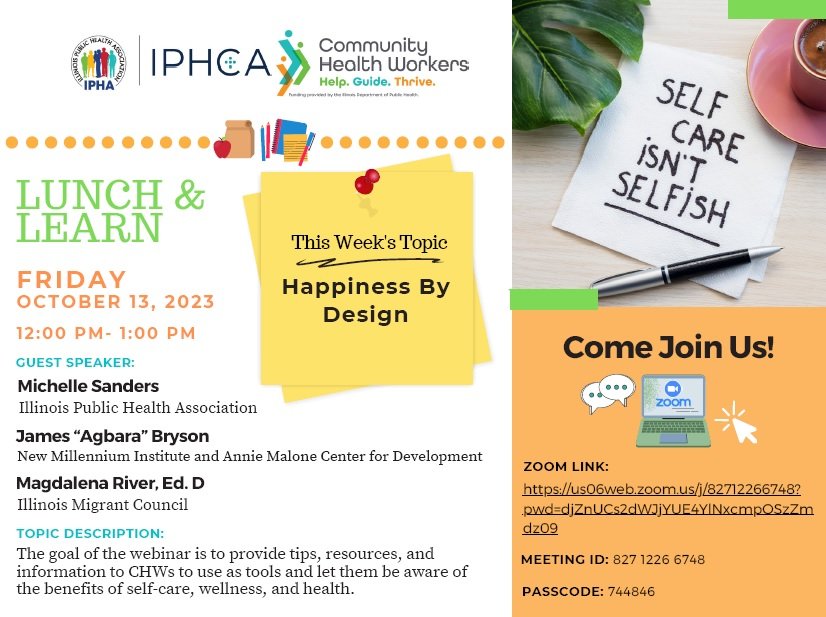 Join us for an upcoming webinar that will provide tips, resources, and information to CHWs to use as tools and let them be aware of the benefits of self-care, wellness, and health.