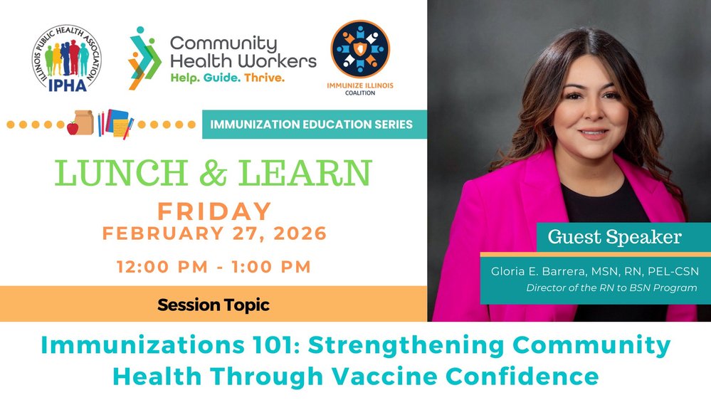 Join us for this series in partnership with the Immunize Illinois Coalition! This three-part series provides Community Health Workers with vaccine basics, practical communication skills for talking with families, and useful strategies to support and advocate for stronger immunization efforts within their communities.